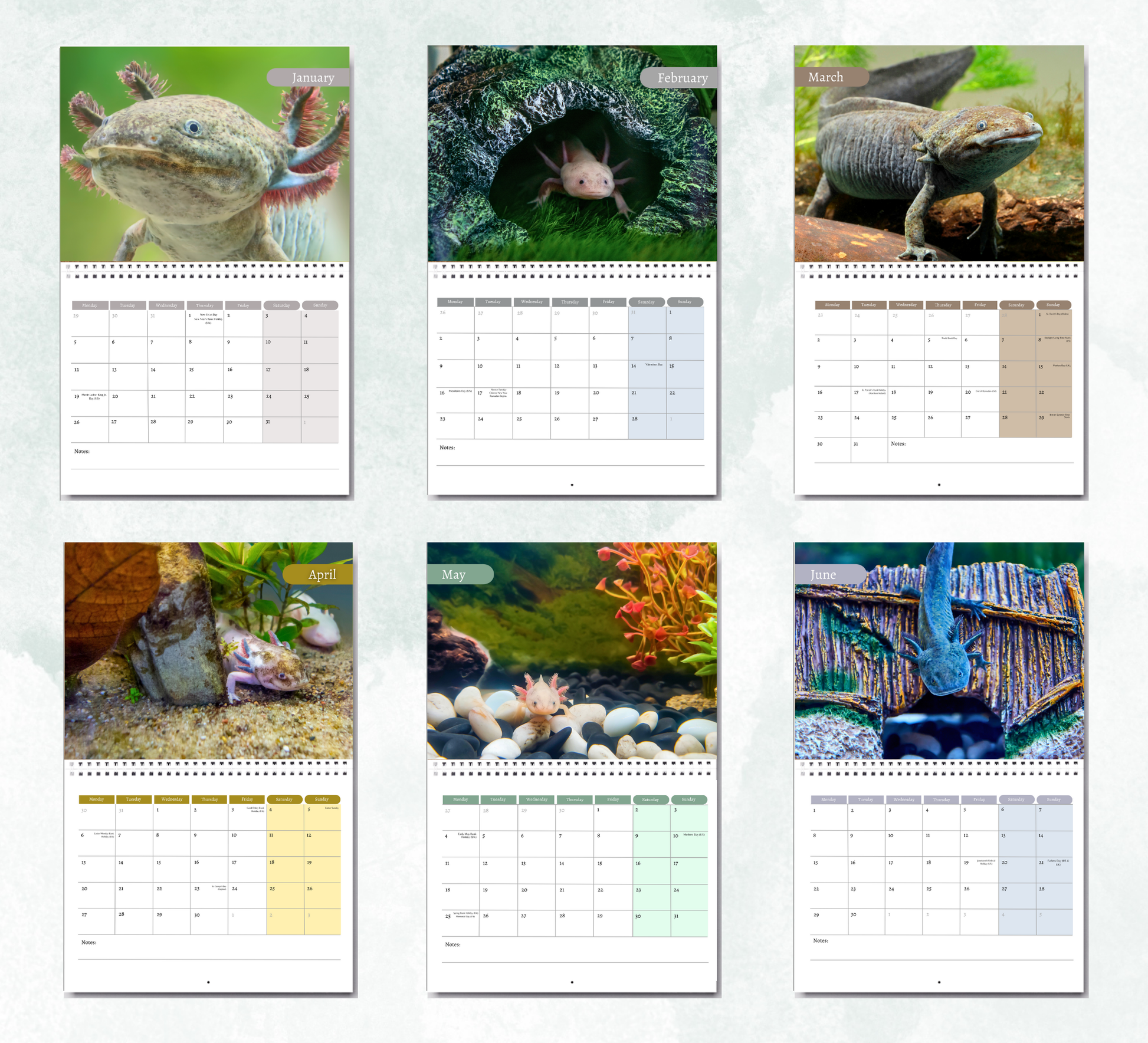 Axolotl Calendar 2026