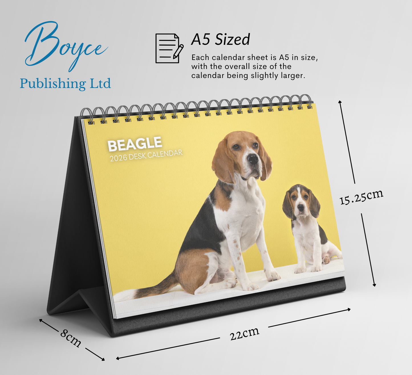 Keep your schedule on track with this beautiful 2026 Beagle desk calendar. Featuring ample space for notes, appointments, and reminders, each month is thoughtfully designed to help you stay organized with ease.