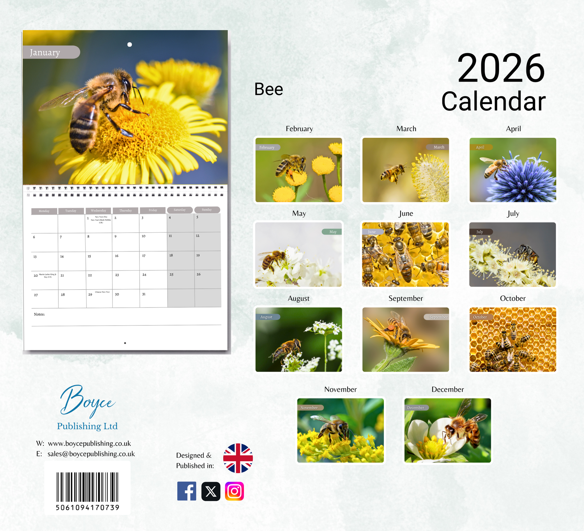 Stay organized with this beautiful 2026 Bee wall calendar. (Jan–Dec 2026).