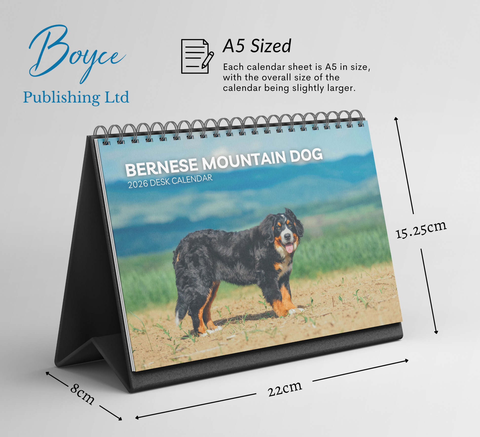 Keep your schedule on track with this beautiful 2026 Bernese Mountain Dog desk calendar. Featuring ample space for notes, appointments, and reminders, each month is thoughtfully designed to help you stay organized with ease.
