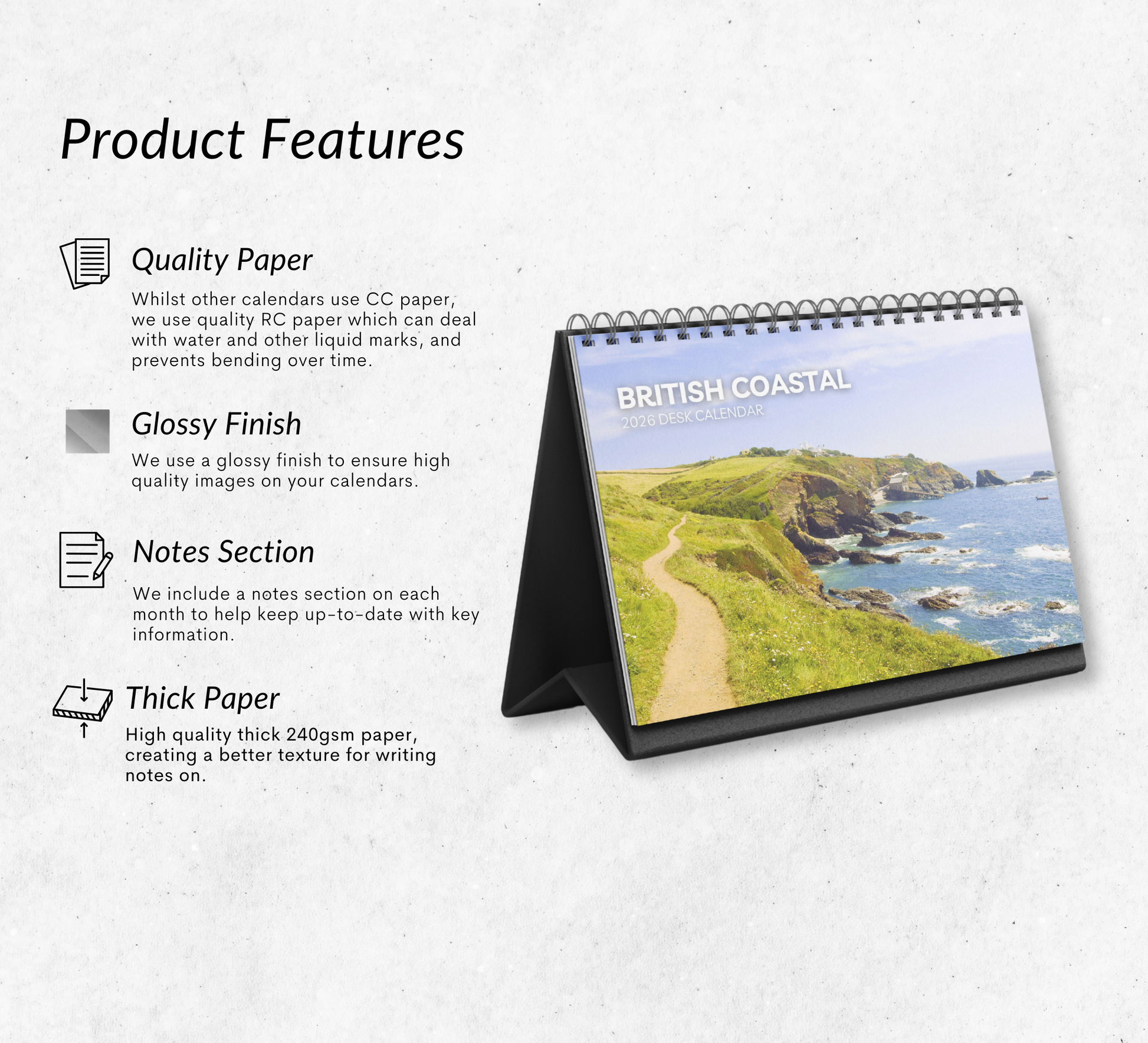 Keep your schedule on track with this beautiful 2026 British Coastal desk calendar. Featuring ample space for notes, appointments, and reminders, each month is thoughtfully designed to help you stay organized with ease.