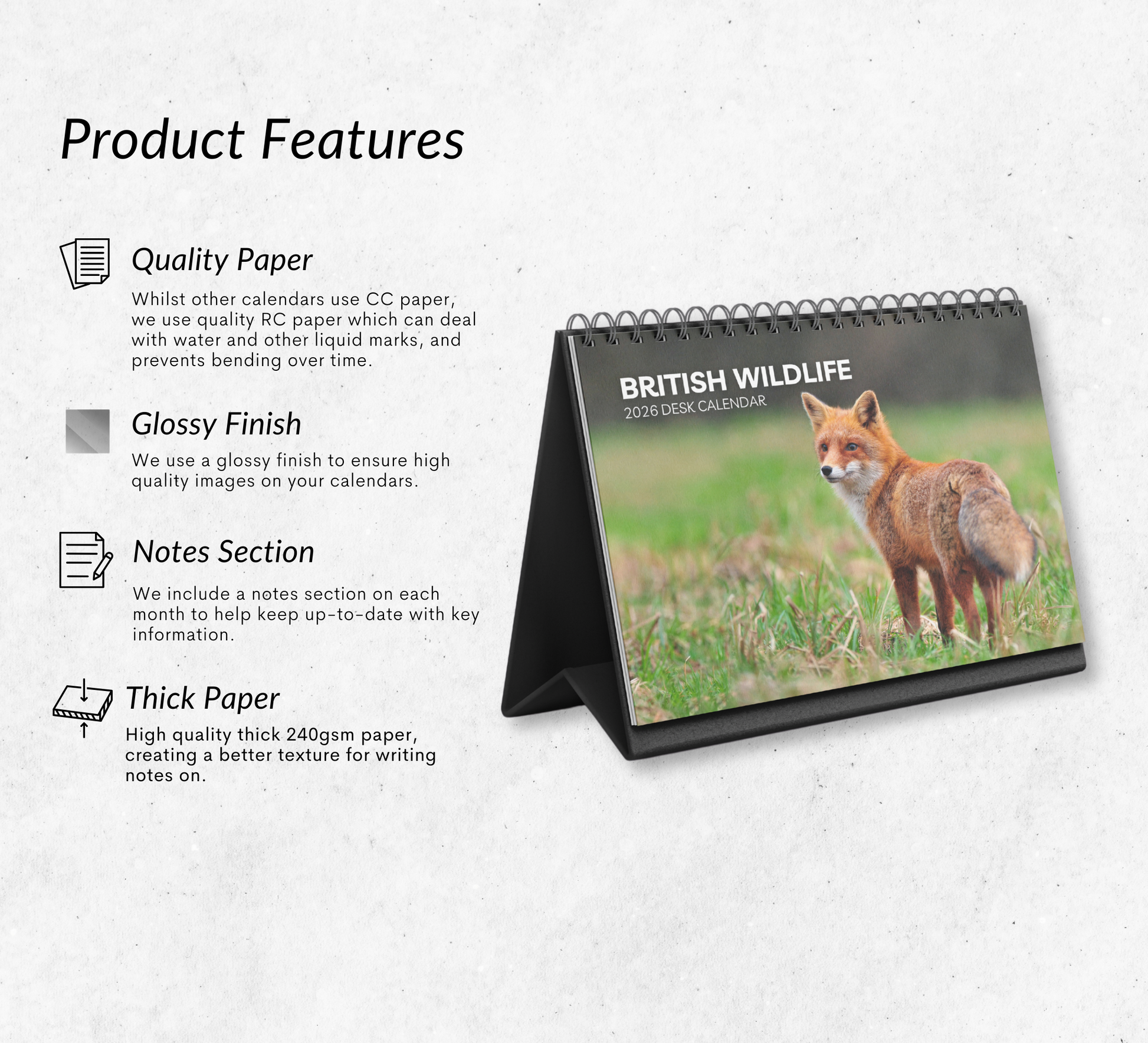 Keep your schedule on track with this beautiful 2026 British Wildlife desk calendar. Featuring ample space for notes, appointments, and reminders, each month is thoughtfully designed to help you stay organized with ease.