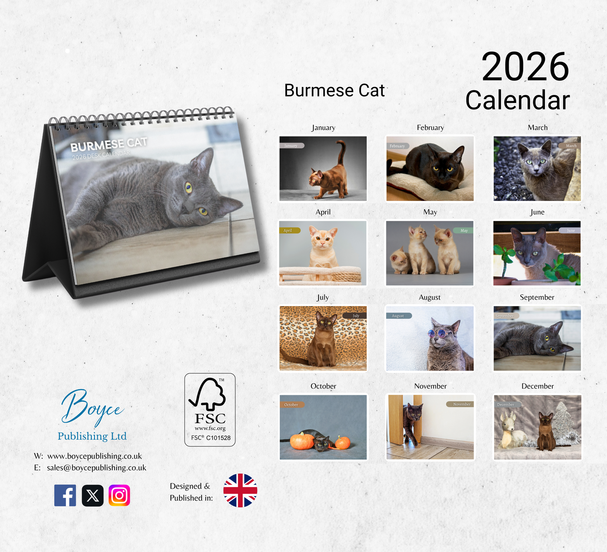 Keep your schedule on track with this beautiful 2026 Burmese Cat desk calendar. Featuring ample space for notes, appointments, and reminders, each month is thoughtfully designed to help you stay organized with ease.
