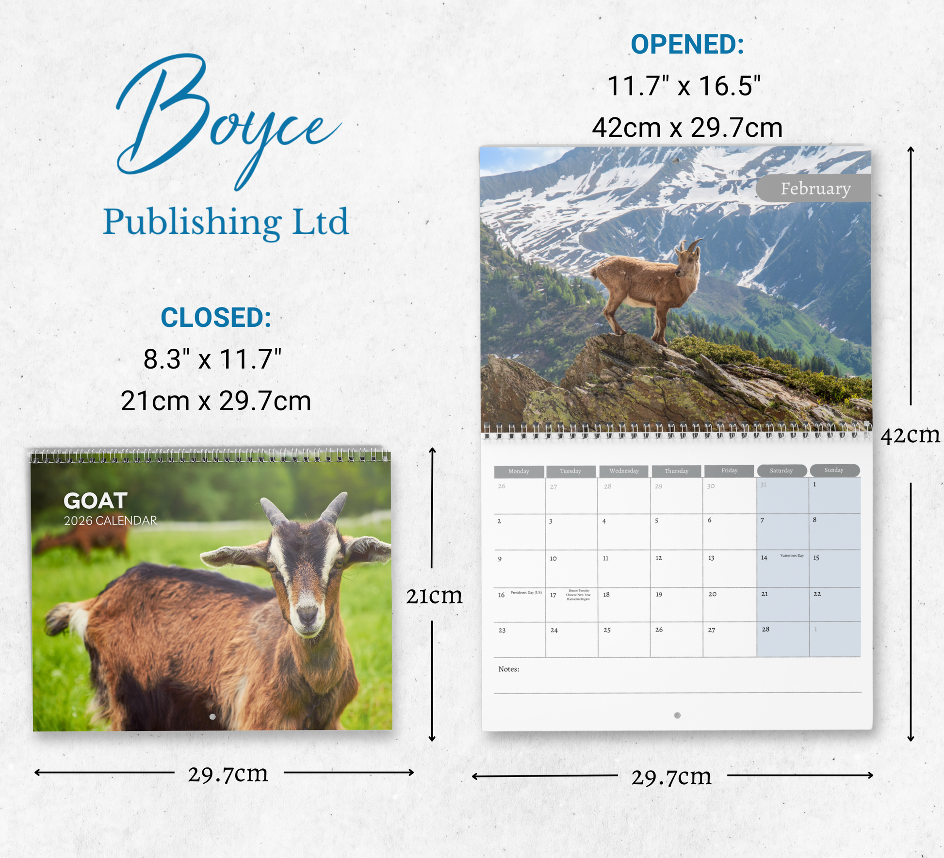 Stay organized with this beautiful 2026 Goat wall calendar. (Jan–Dec 2026).