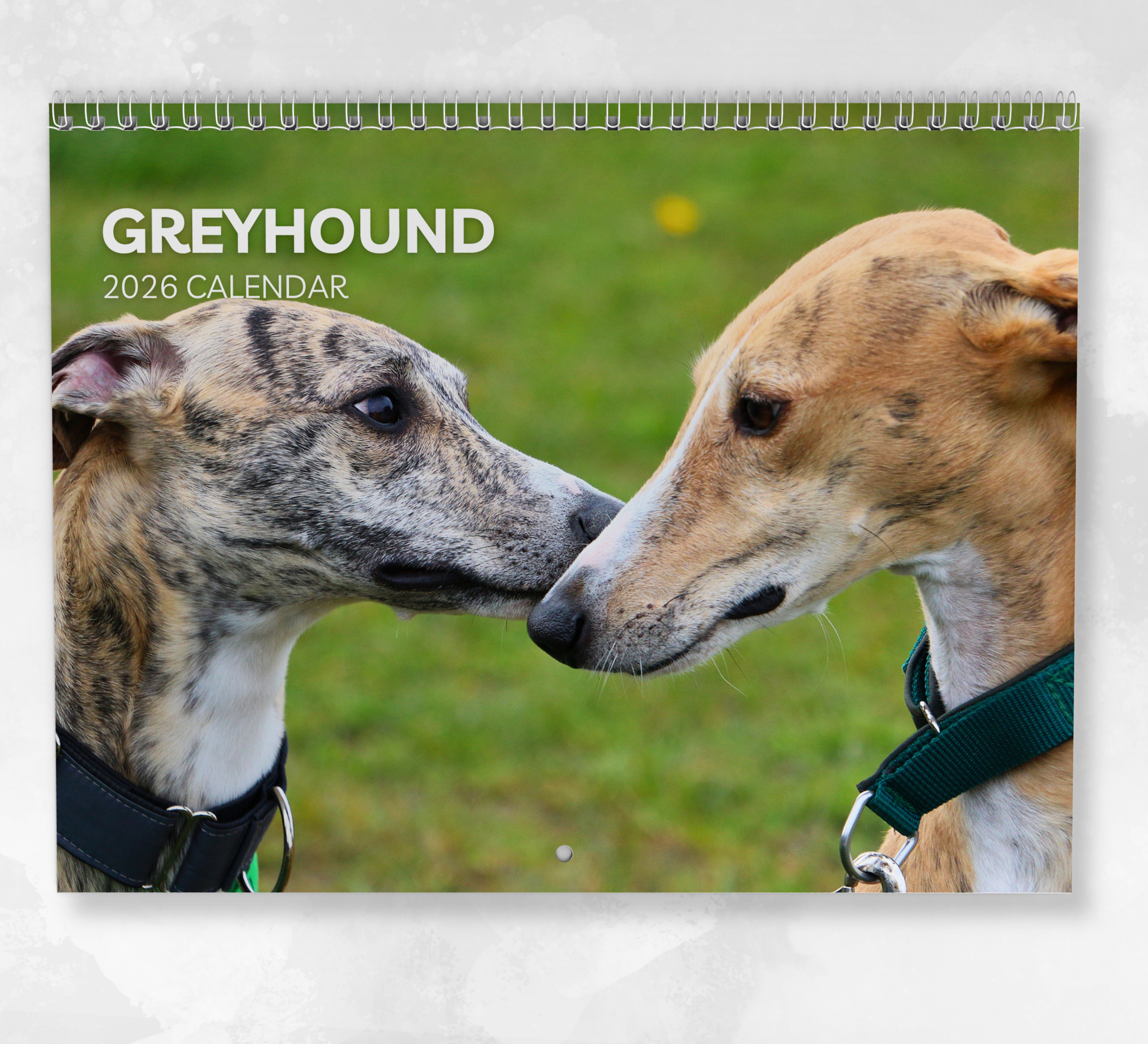 Stay organized with this beautiful 2026 Greyhound wall calendar. (Jan–Dec 2026).