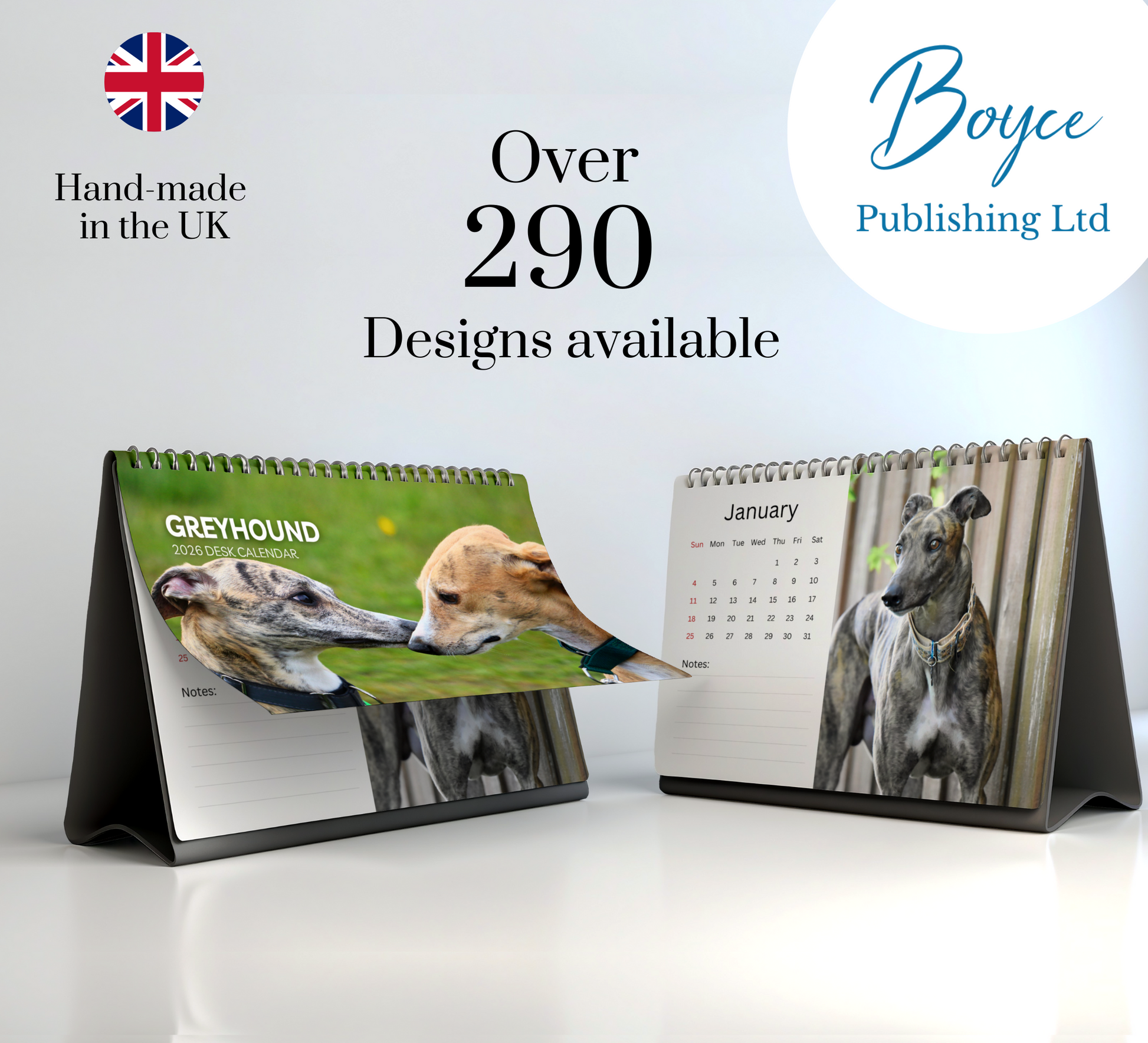 Keep your schedule on track with this beautiful 2026 Greyhound desk calendar. Featuring ample space for notes, appointments, and reminders, each month is thoughtfully designed to help you stay organized with ease.