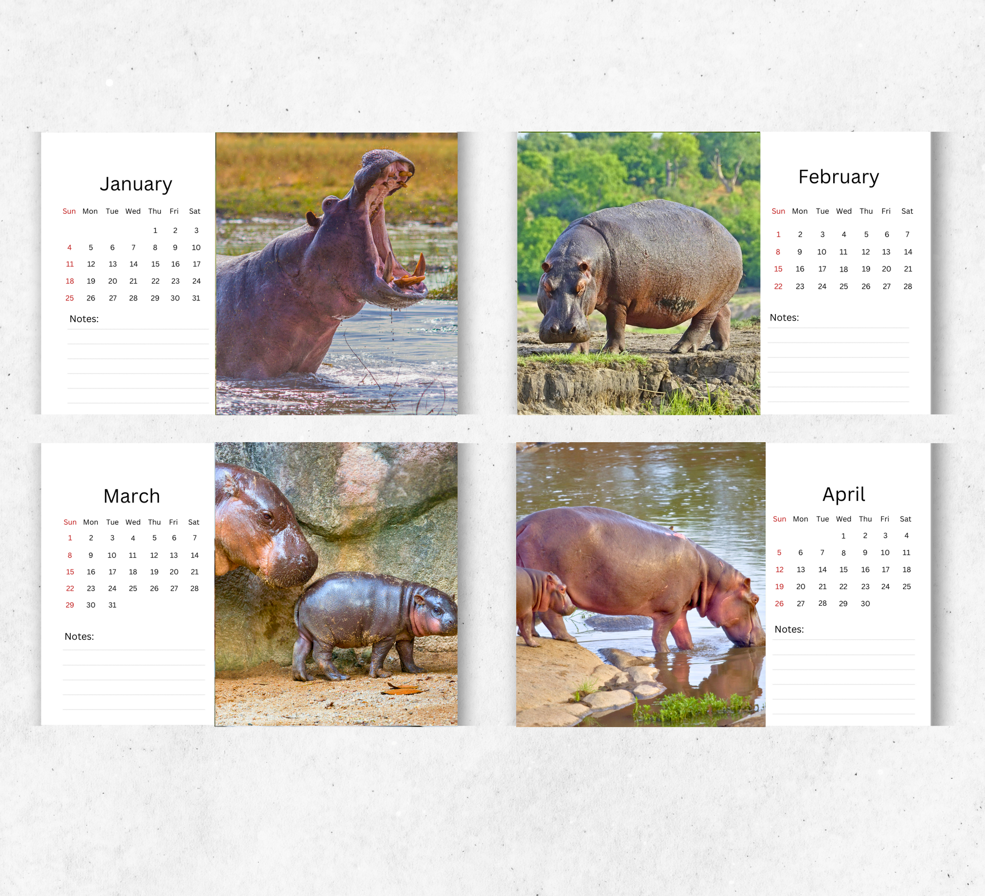 Keep your schedule on track with this beautiful 2026 Hippo desk calendar. Featuring ample space for notes, appointments, and reminders, each month is thoughtfully designed to help you stay organized with ease.