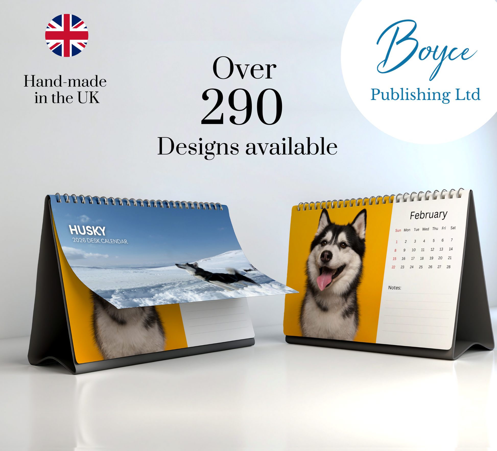 Keep your schedule on track with this beautiful 2026 Husky desk calendar. Featuring ample space for notes, appointments, and reminders, each month is thoughtfully designed to help you stay organized with ease.