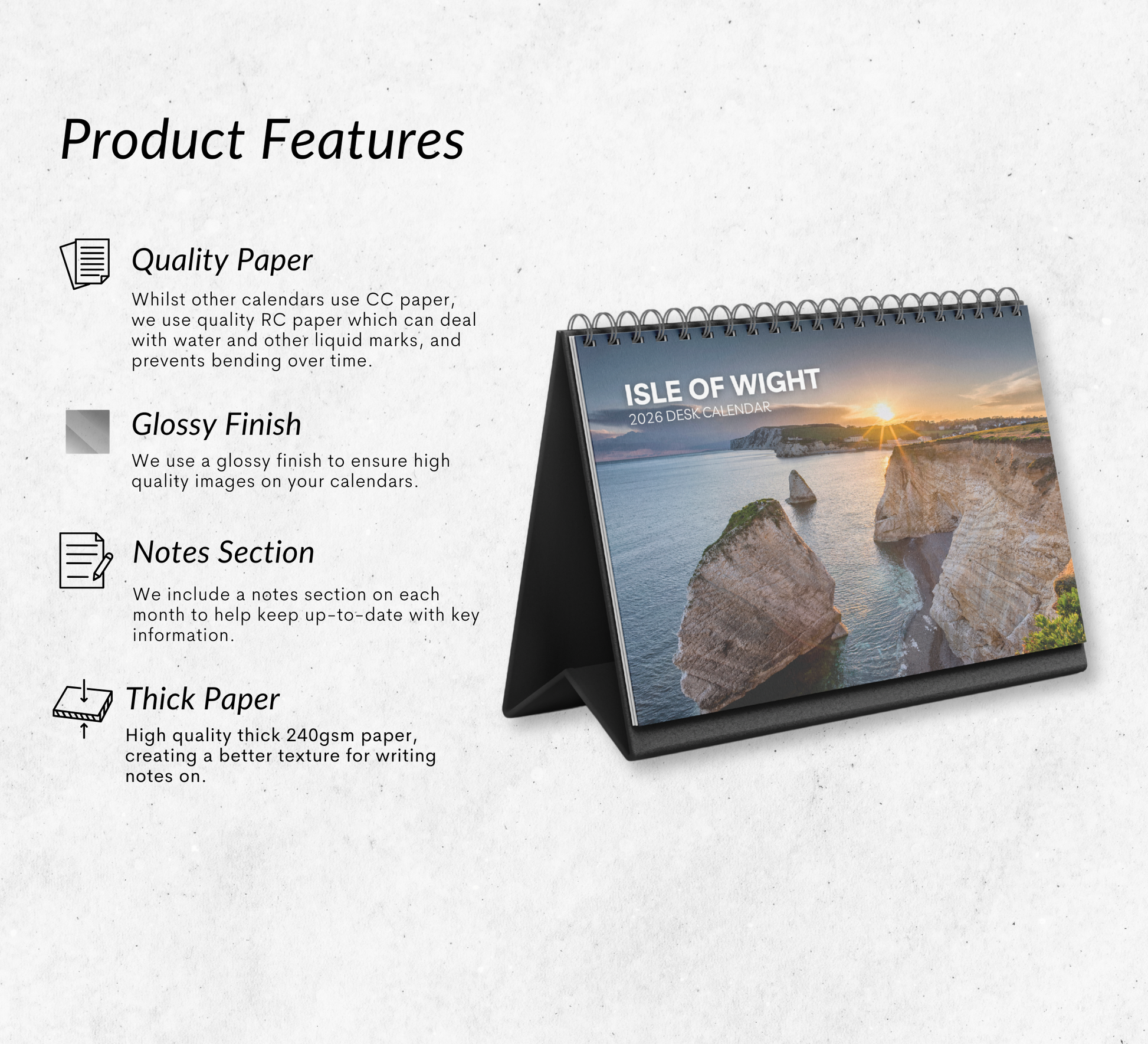 Keep your schedule on track with this beautiful 2026 Isle of Wight desk calendar. Featuring ample space for notes, appointments, and reminders, each month is thoughtfully designed to help you stay organized with ease.