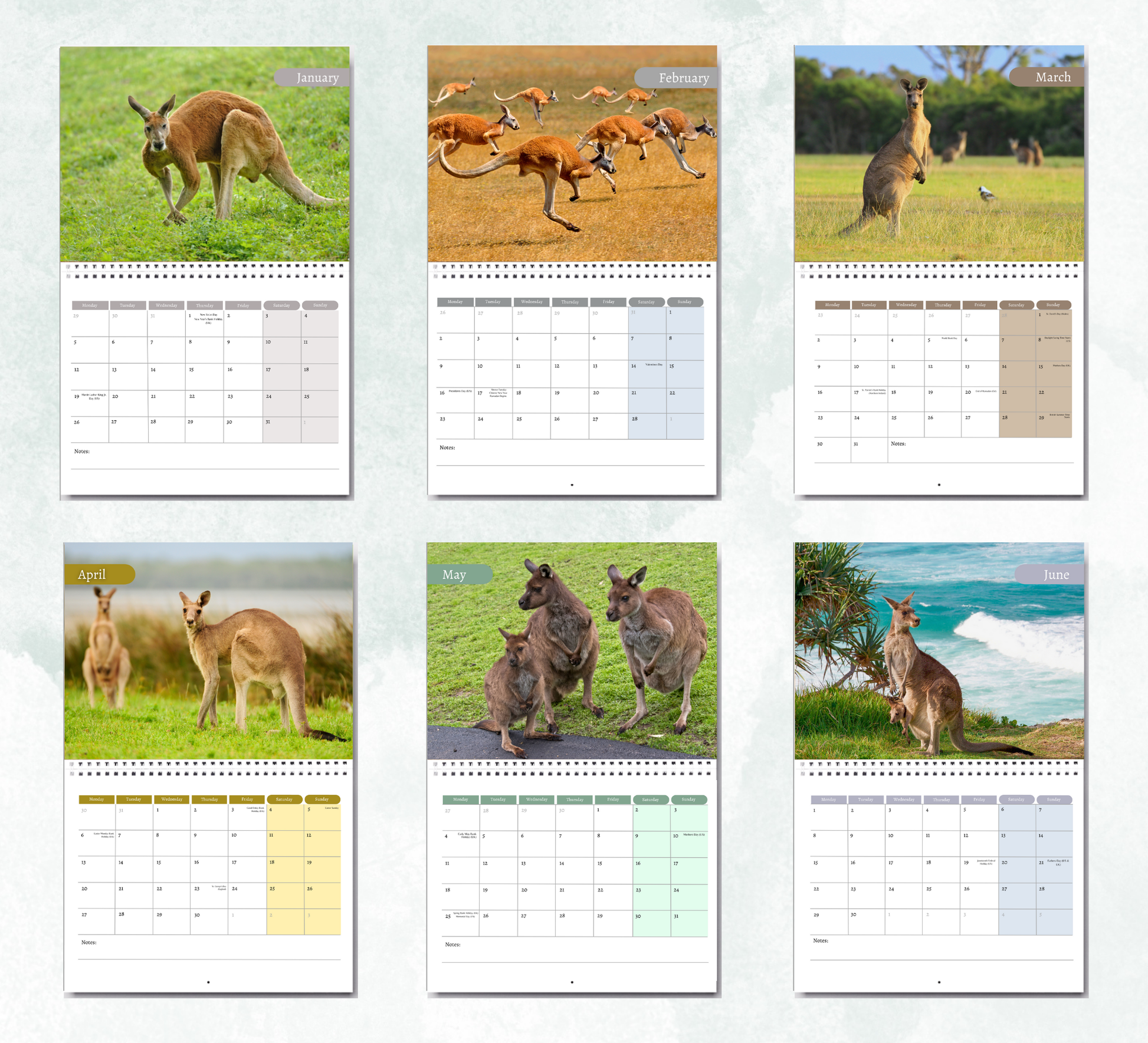 Stay organized with this beautiful 2026 Kangaroo wall calendar. (Jan–Dec 2026).