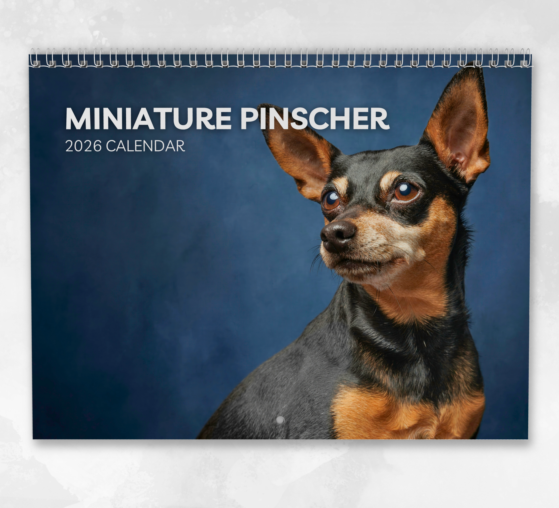 Stay organized with this beautiful 2026 Miniature Pinscher wall calendar. (Jan–Dec 2026).