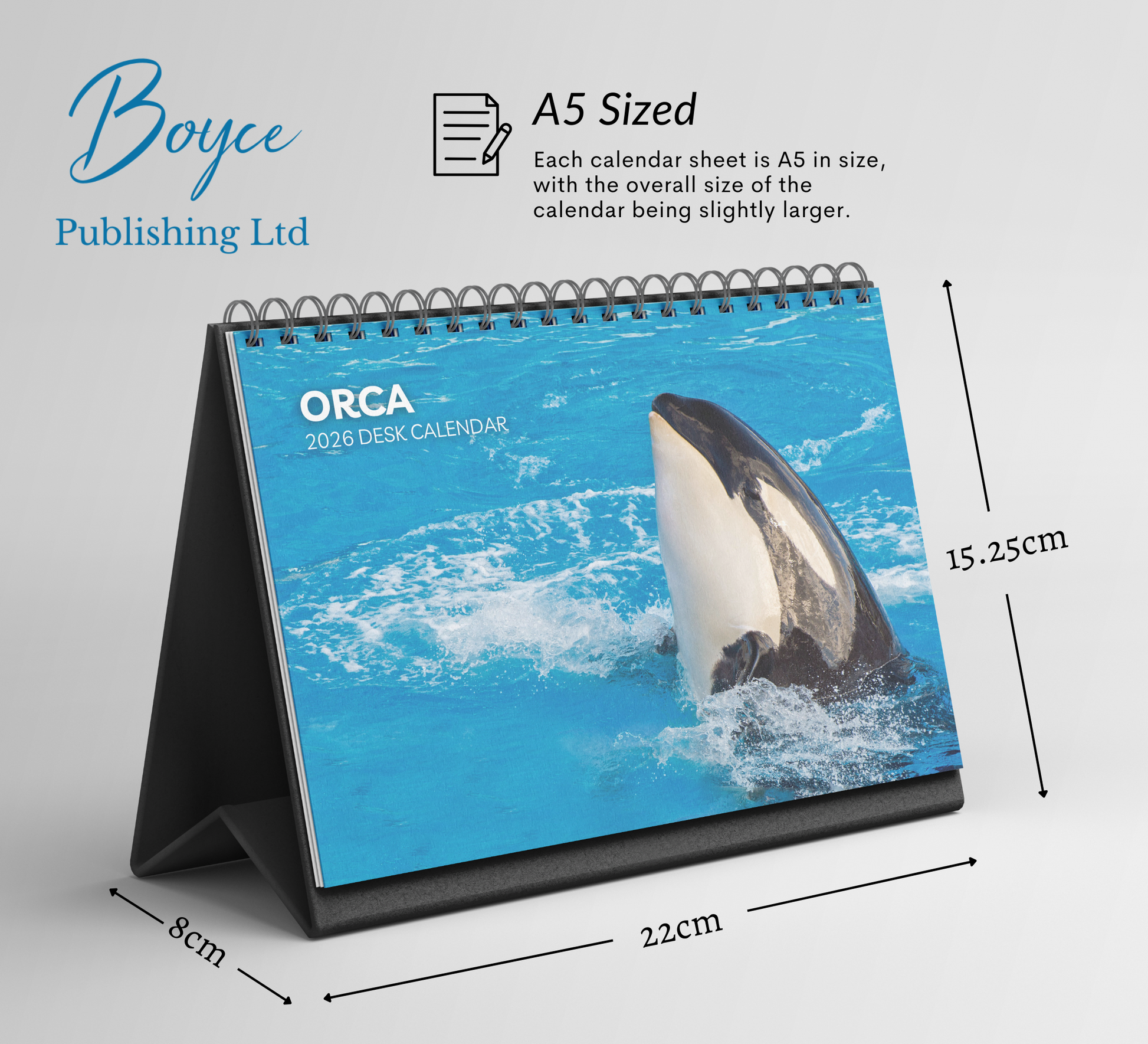 Keep your schedule on track with this beautiful 2026 Orca desk calendar. Featuring ample space for notes, appointments, and reminders, each month is thoughtfully designed to help you stay organized with ease.