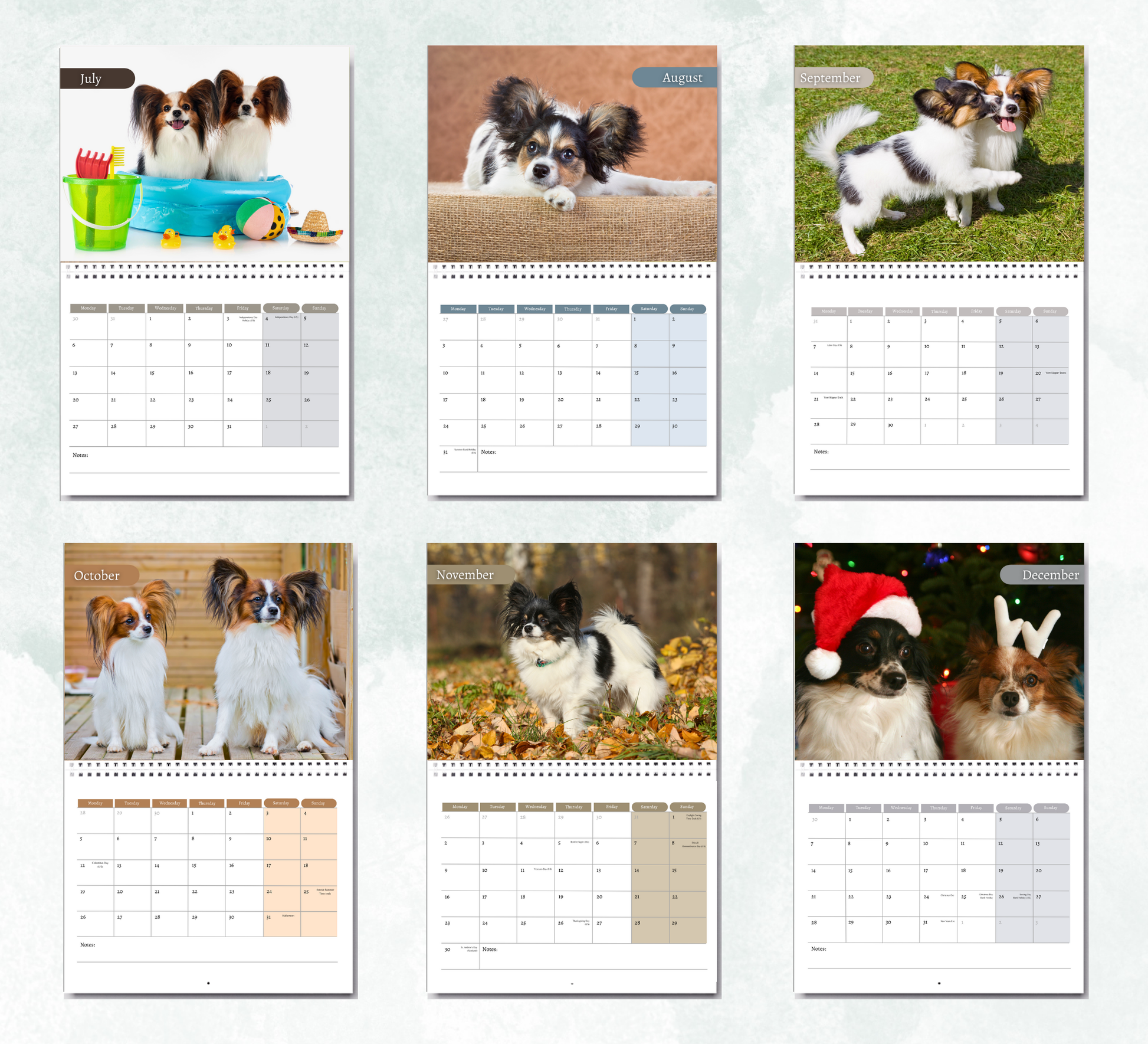 Each page features a vibrant, full-color Papillon images paired with a spacious monthly grid for notes and appointments. Brightens your kitchen, living room, office, or classroom with elegant charm.