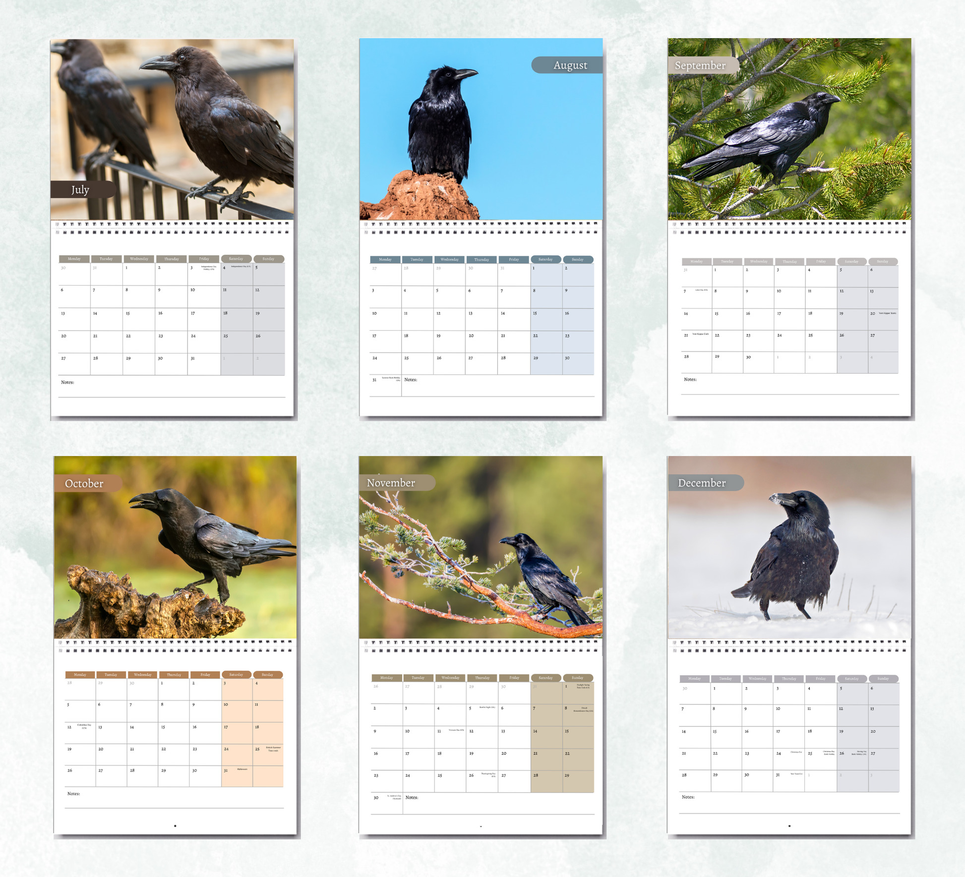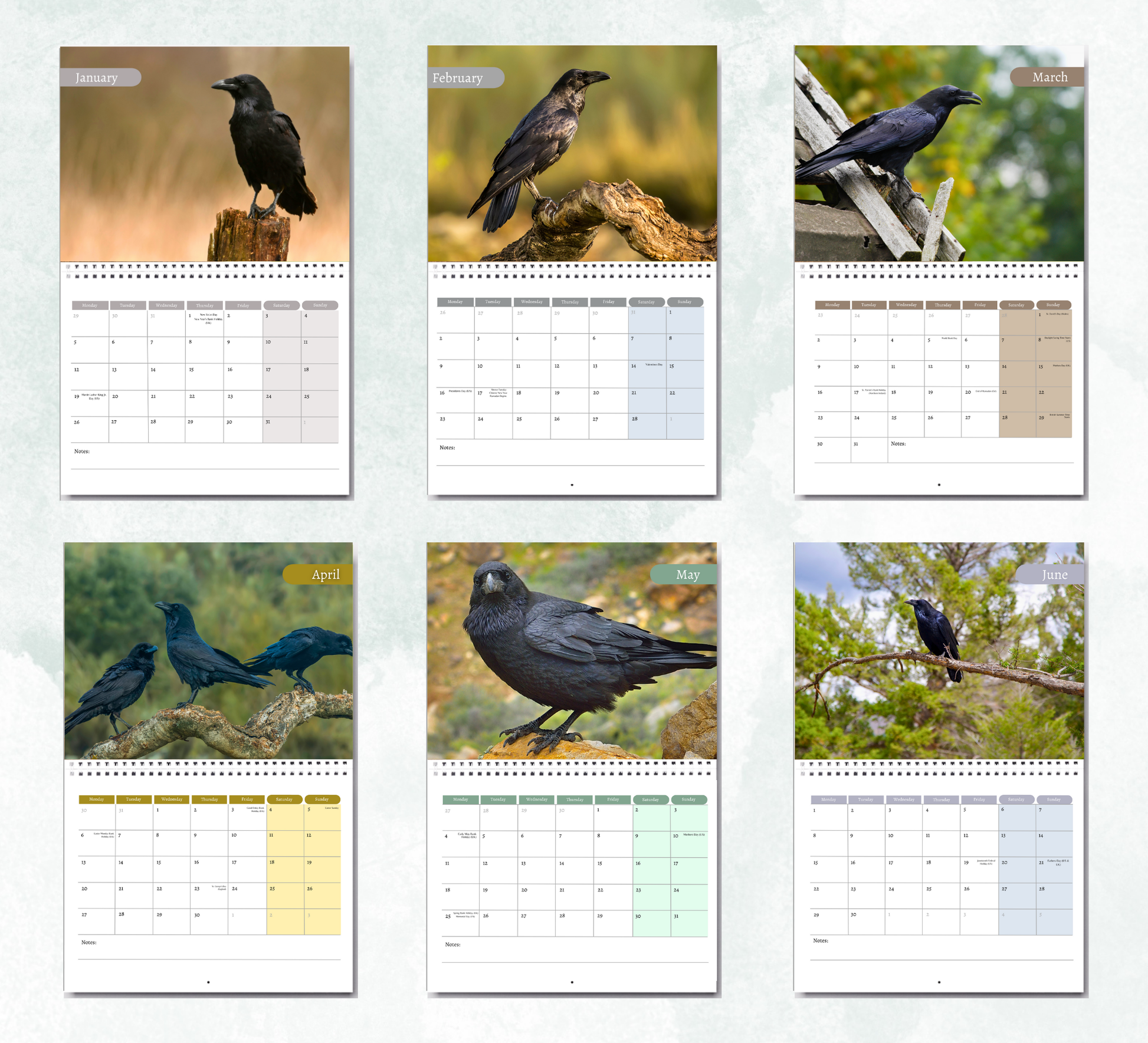 Stay organized with this beautiful 2026 Raven wall calendar. (Jan–Dec 2026).