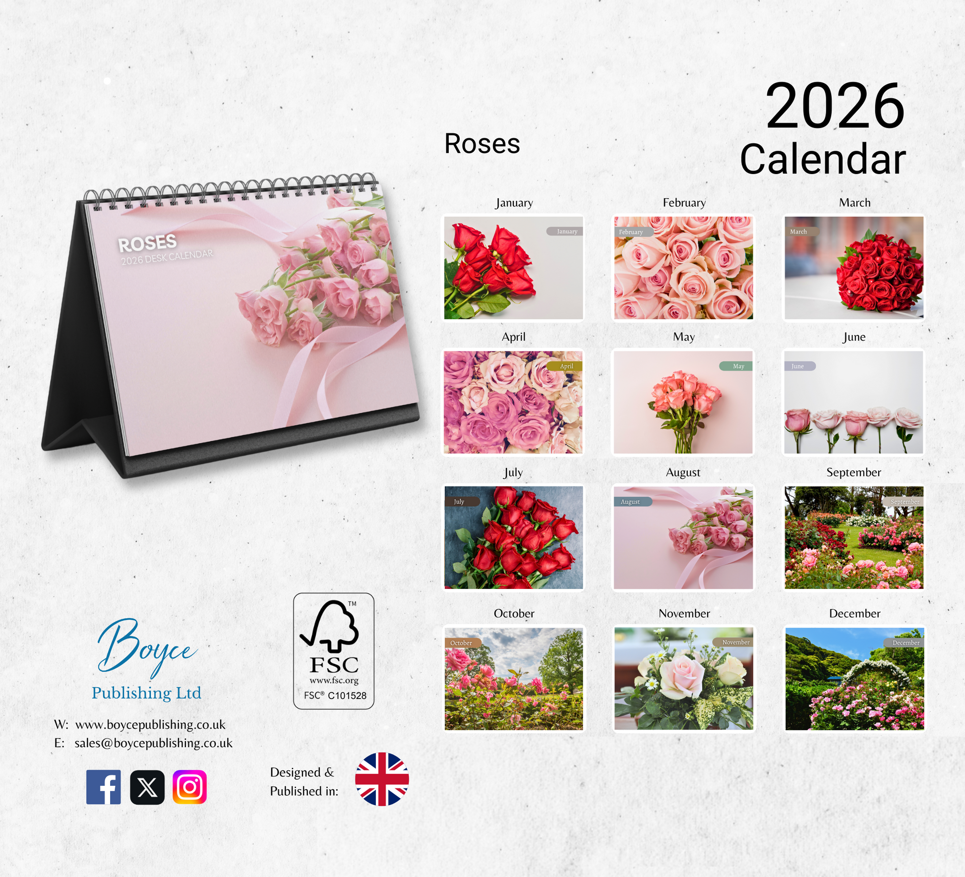 Keep your schedule on track with this beautiful 2026 Roses desk calendar. Featuring ample space for notes, appointments, and reminders, each month is thoughtfully designed to help you stay organized with ease.