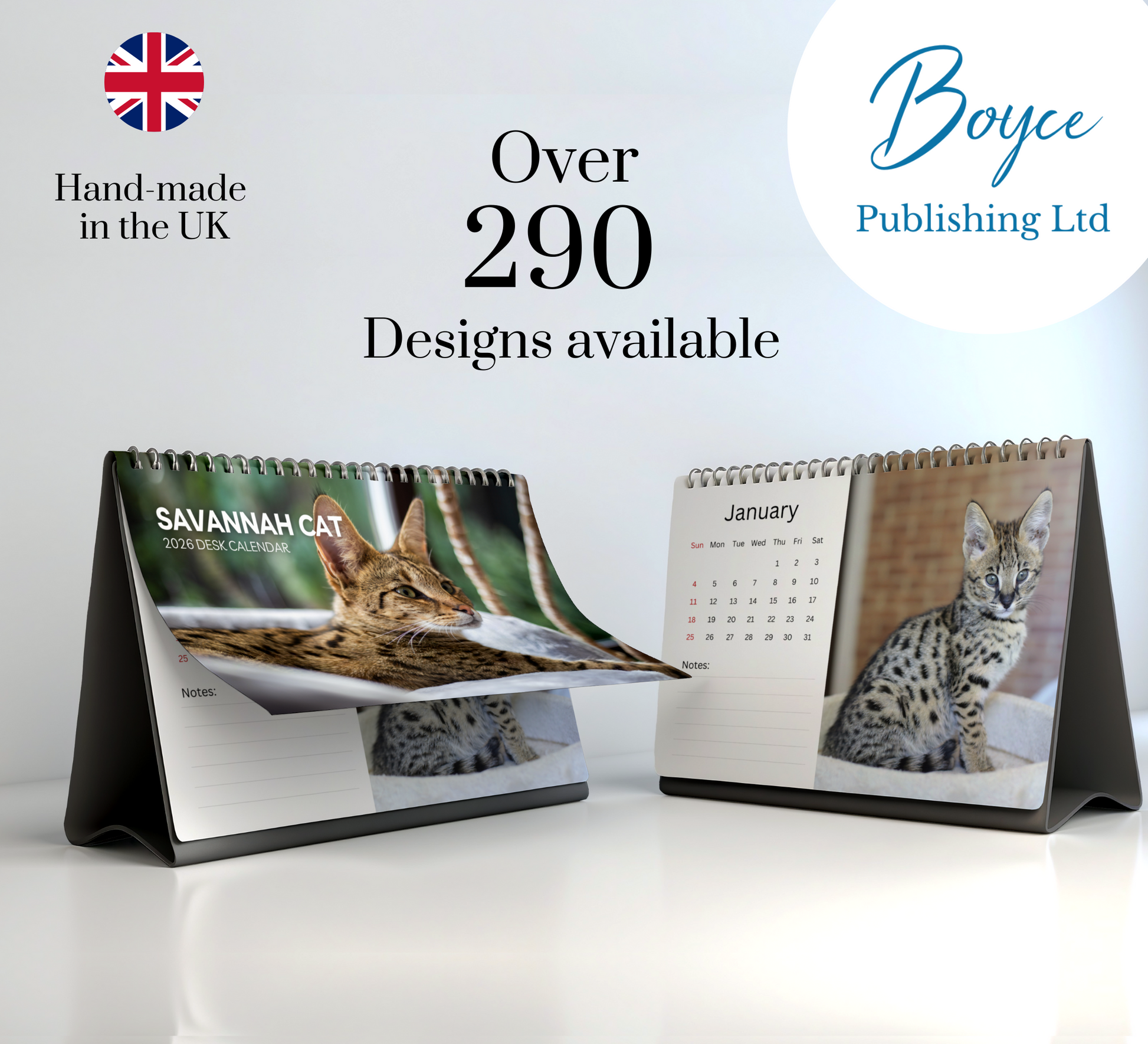 Keep your schedule on track with this beautiful 2026 Savannah Cat desk calendar. Featuring ample space for notes, appointments, and reminders, each month is thoughtfully designed to help you stay organized with ease.