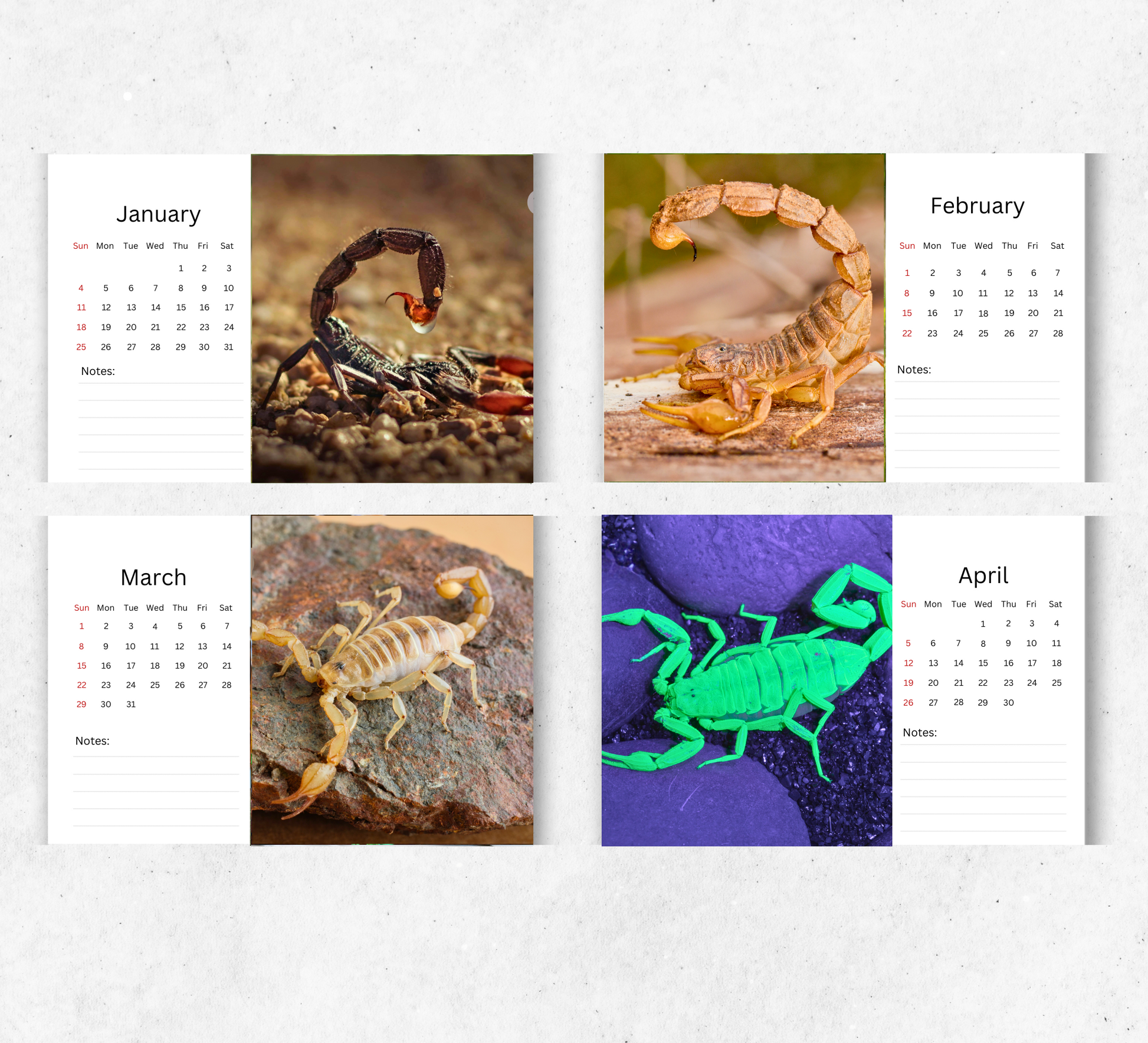 Keep your schedule on track with this beautiful 2026 Scorpion desk calendar. Featuring ample space for notes, appointments, and reminders, each month is thoughtfully designed to help you stay organized with ease.