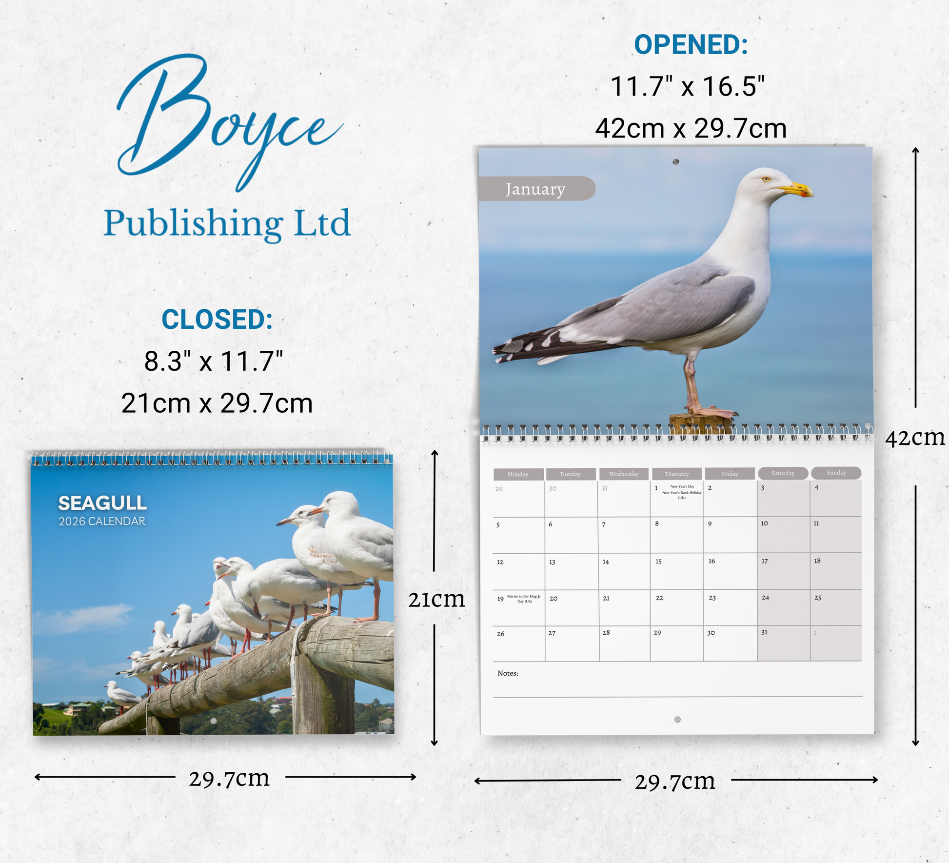Stay organized with this beautiful 2026 Seagull wall calendar. (Jan–Dec 2026).