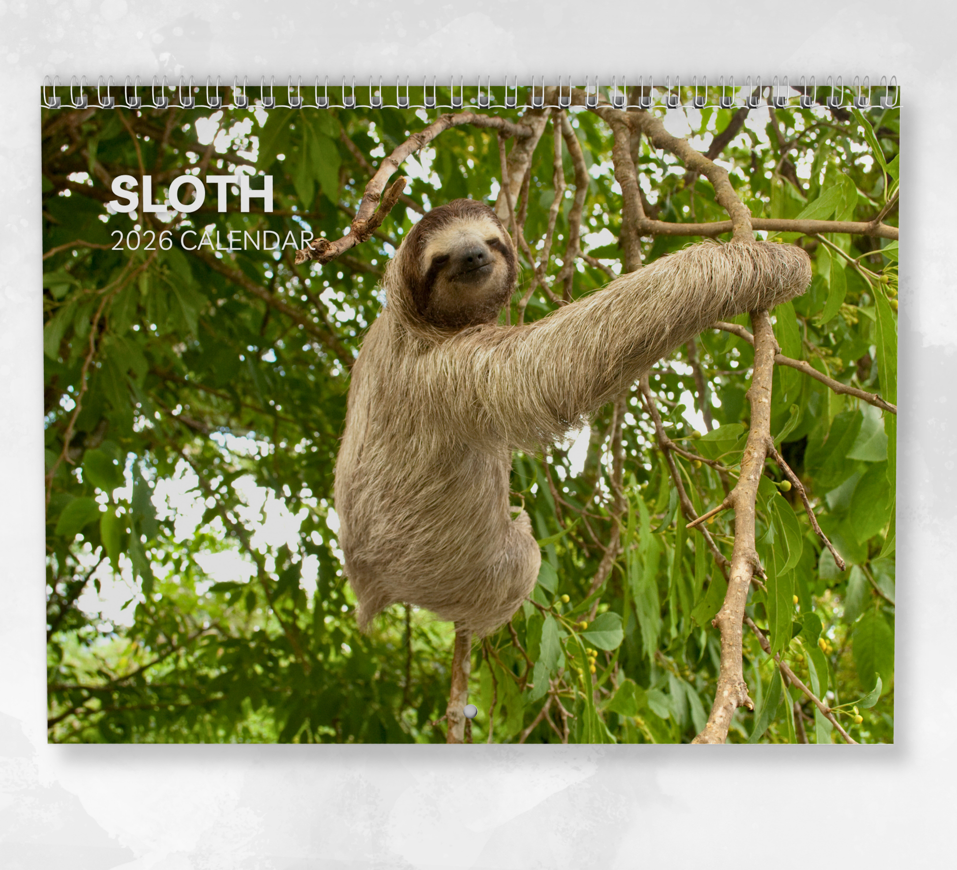 Stay organized with this beautiful 2026 Sloth wall calendar. (Jan–Dec 2026).