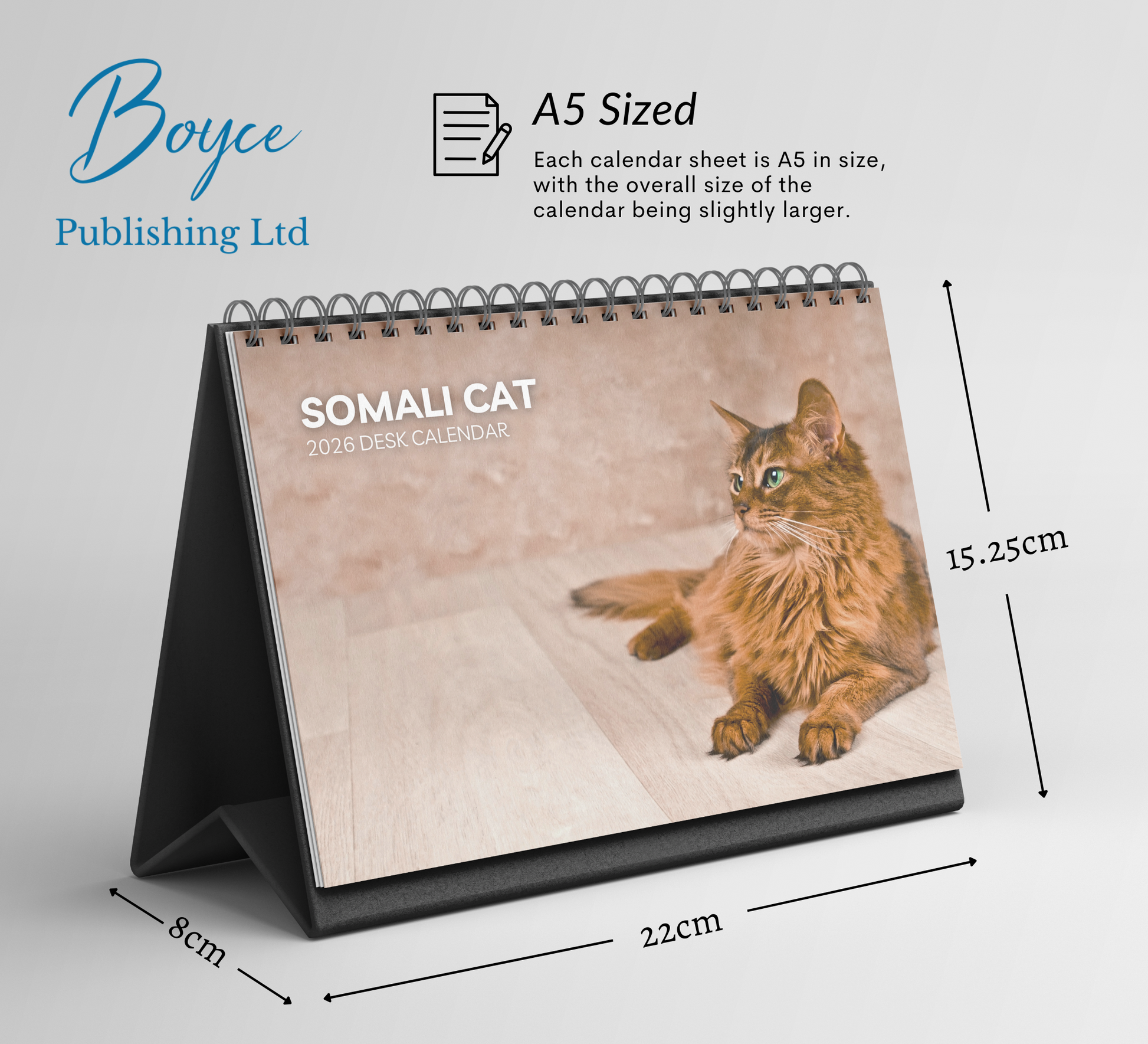 Keep your schedule on track with this beautiful 2026 Somali Cat desk calendar. Featuring ample space for notes, appointments, and reminders, each month is thoughtfully designed to help you stay organized with ease.
