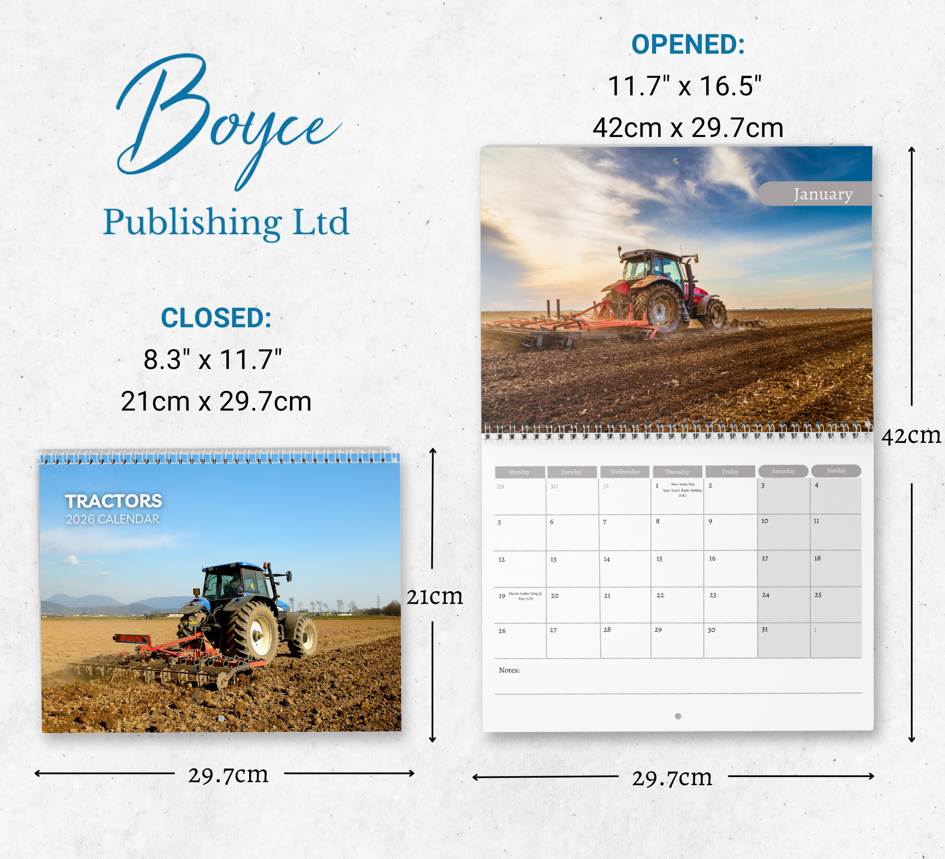 Stay organized with this beautiful 2026 Tractors wall calendar. (Jan–Dec 2026).