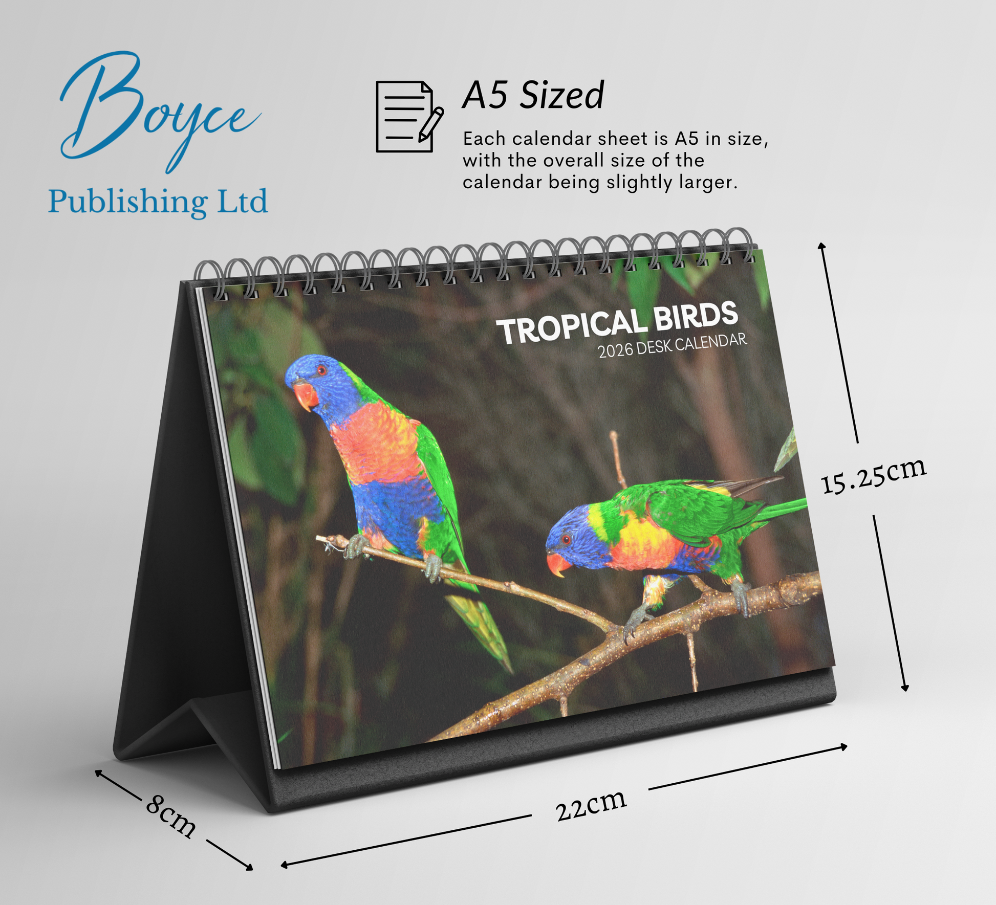 Keep your schedule on track with this beautiful 2026 Tropical Birds desk calendar. Featuring ample space for notes, appointments, and reminders, each month is thoughtfully designed to help you stay organized with ease.