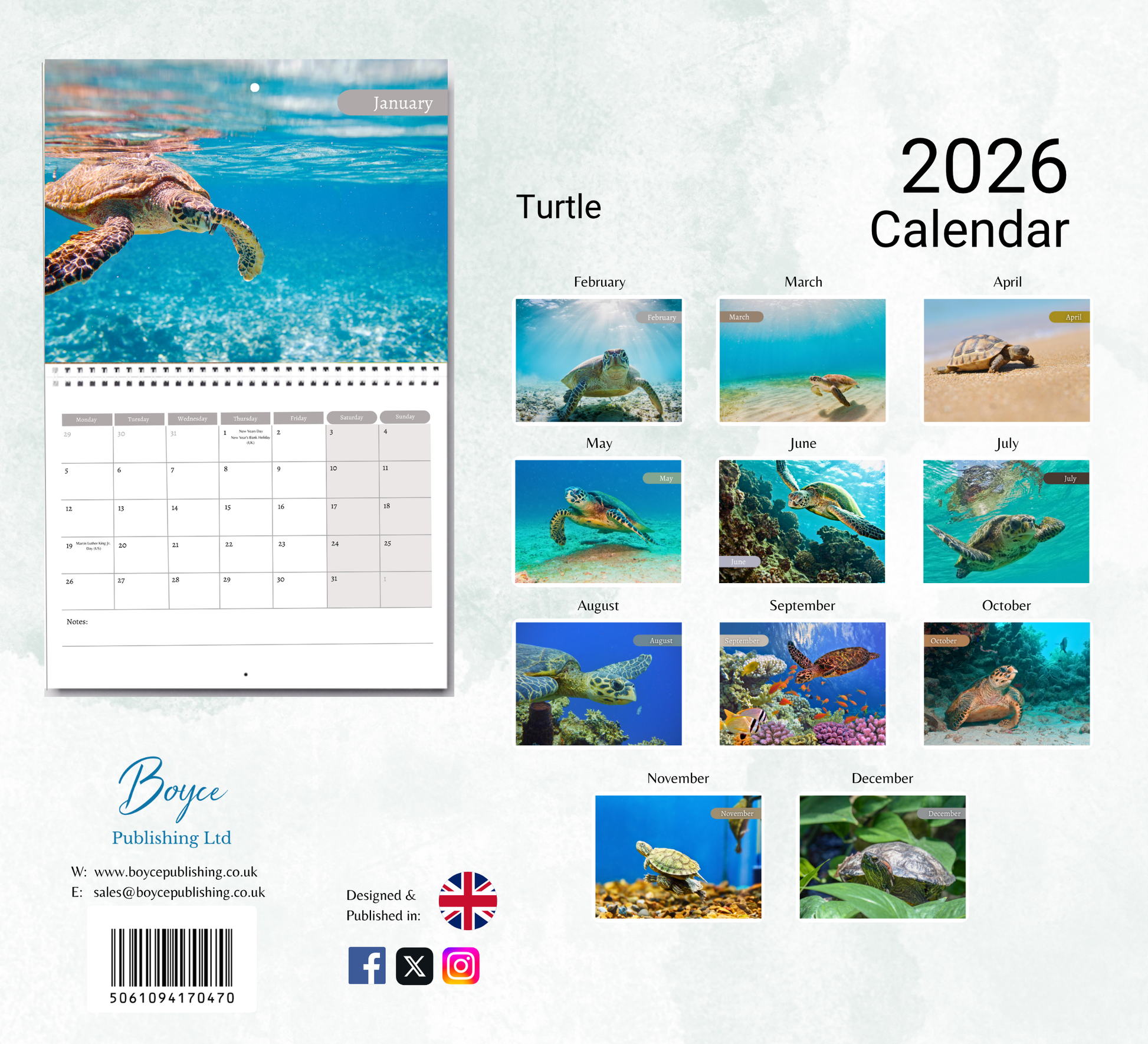 Stay organized with this beautiful 2026 Turtle wall calendar. (Jan–Dec 2026).