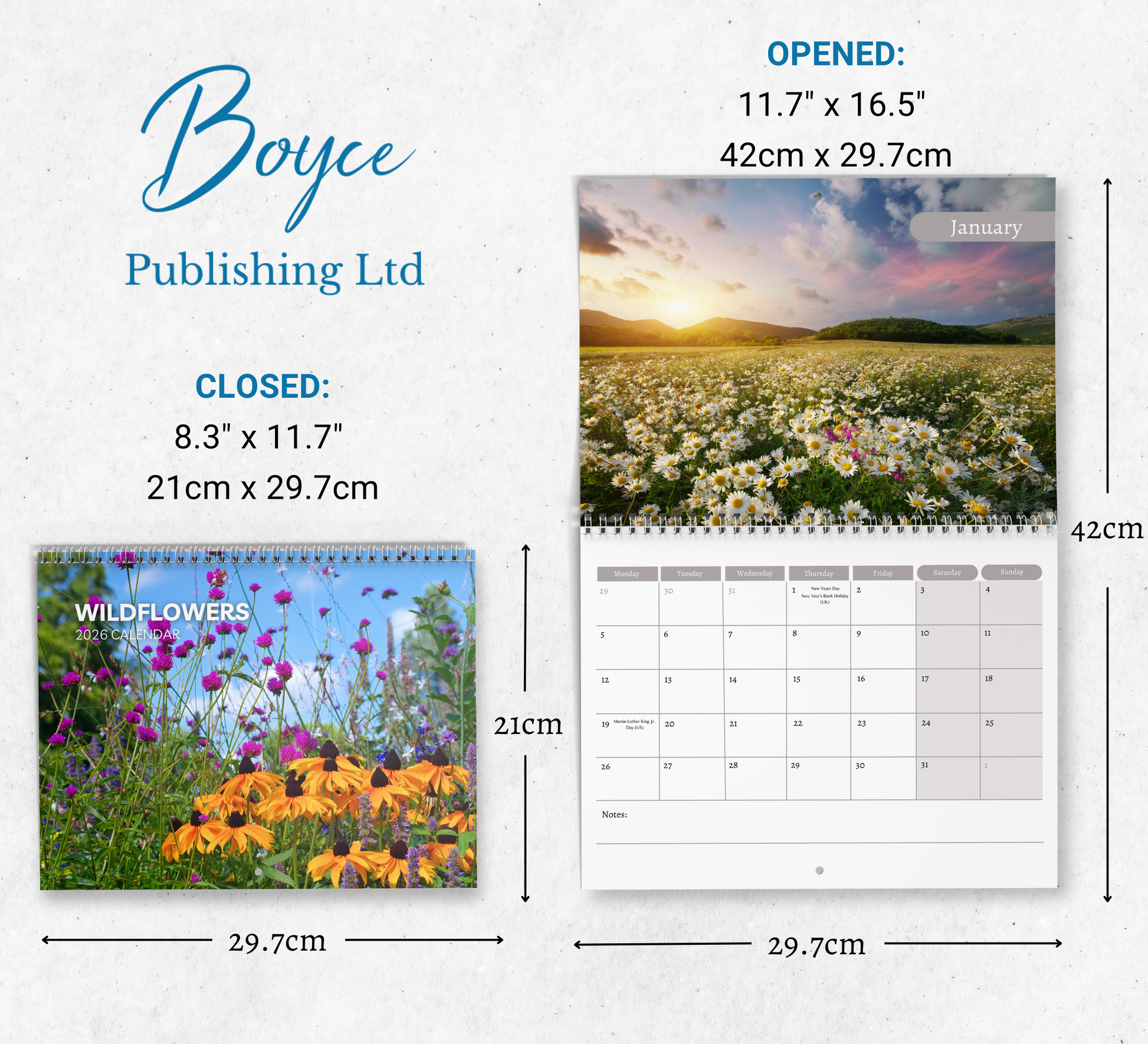 Stay organized with this beautiful 2026 Wildflowers wall calendar. (Jan–Dec 2026).